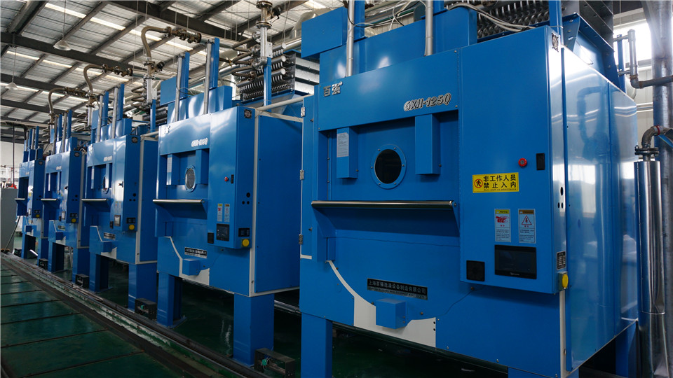 水洗廠設備的第三個設備燙平機,目前市場上的燙平機有電加熱燙平機,燃氣加熱燙平機,蒸汽加熱燙平機三種加熱方式的燙平機。水洗廠可以根據自己能夠提供的熱能源來采購燙平機設備。這三種燙平機設備當中,燃氣燙平機為省錢,但是要求水洗廠的周邊必須有燃氣管道,并且能夠通到所開設水洗廠的廠房內,才能采購燃氣燙平機。蒸汽燙平機使用價格處于燃氣燙平機和電加熱燙皮機機的中間,這種燙平機適用于周邊沒有燃氣管道或者管燃氣管道但不能通向水洗廠內的,廠房園區內又可以搭設鍋爐的建議采用蒸汽燙平機。如果前兩者都不能實現,那么只能采用電加熱的燙平機。